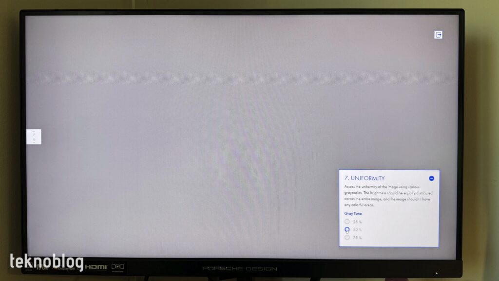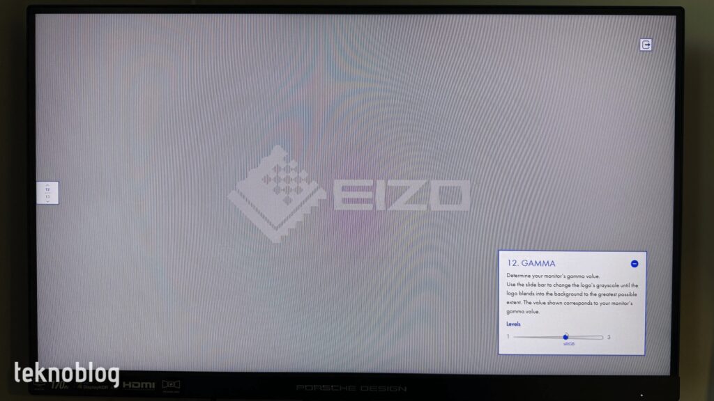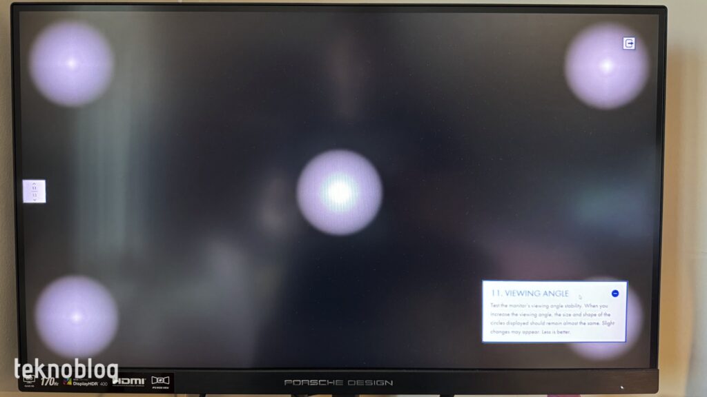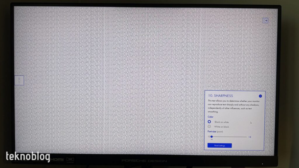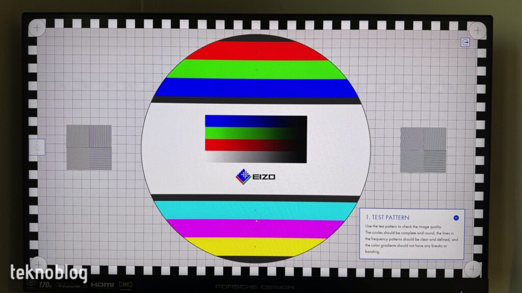 Nous avons soumis le PD27S à divers tests de moniteur. Lorsque nous regardons la séquence de test du moniteur EIZO, il n'y a aucune fluctuation ou bande dans les couleurs du motif de test, les lignes sont pleines et nettes, sans cassures. Dans le test « Uniformité », la luminosité de l’écran est répartie de manière homogène dans toute la tonalité de gris. Dans le test de dégradé, la répartition de la luminosité tout au long du changement de couleur est régulière. PD27S parvient également à réussir le test de netteté. Le texte à l'écran offre une apparence nette et lisible, sans ombres, même à différentes tailles. Lors du test de l'angle de vision, la taille des cercles visibles sur l'écran diminue d'environ 30 % lorsque l'angle de vision dépasse 135 degrés. Cependant, comme nous l'avons mentionné ci-dessus, même si les angles de vision augmentent jusqu'à des niveaux très élevés, la dégradation de l'expérience visuelle et de la qualité de l'écran reste à un niveau inférieur. Dans le test gamma, la valeur gamma du moniteur est au niveau sRGB.