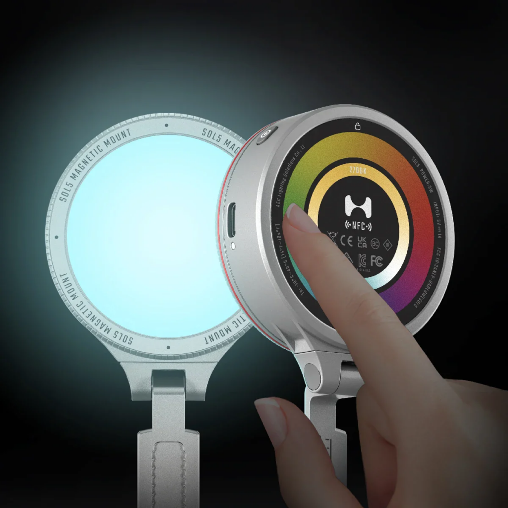 Le Sol 5 se distingue comme une source lumineuse de trois pouces qui peut être facilement montée à l’arrière de l’iPhone avec une connexion MagSafe. L'appareil, qui produit 200 lumens de lumière en mode standard, peut augmenter cette valeur jusqu'à 360 lumens en mode « boost » de 30 secondes. Il offre également un contrôle de la température de couleur et de la luminosité réglable entre 2 700 K et 6 500 K, permettant aux utilisateurs de s'adapter aux différentes conditions d'éclairage.