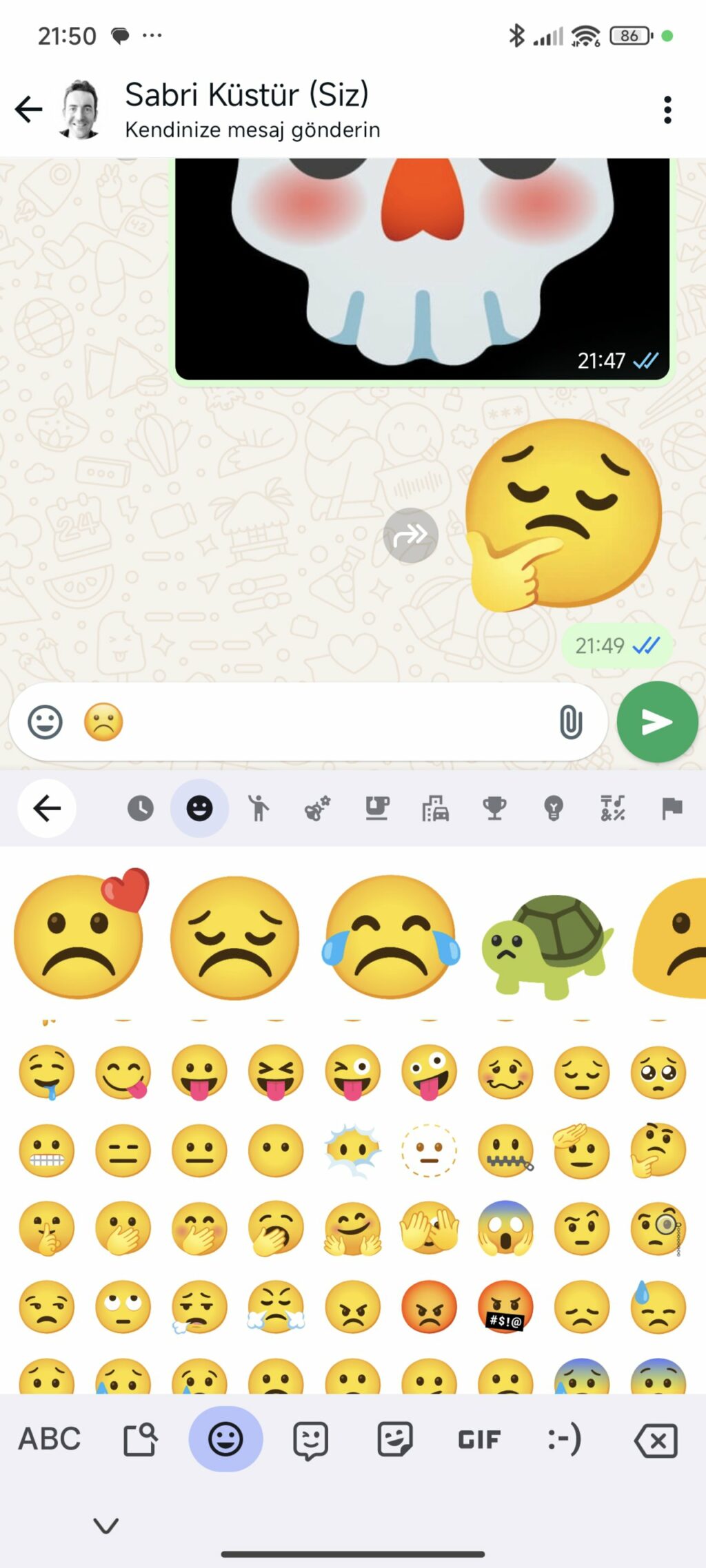 Enfin, appuyez sur la combinaison d'emoji choisie pour l'ajouter à votre message et l'envoyer.